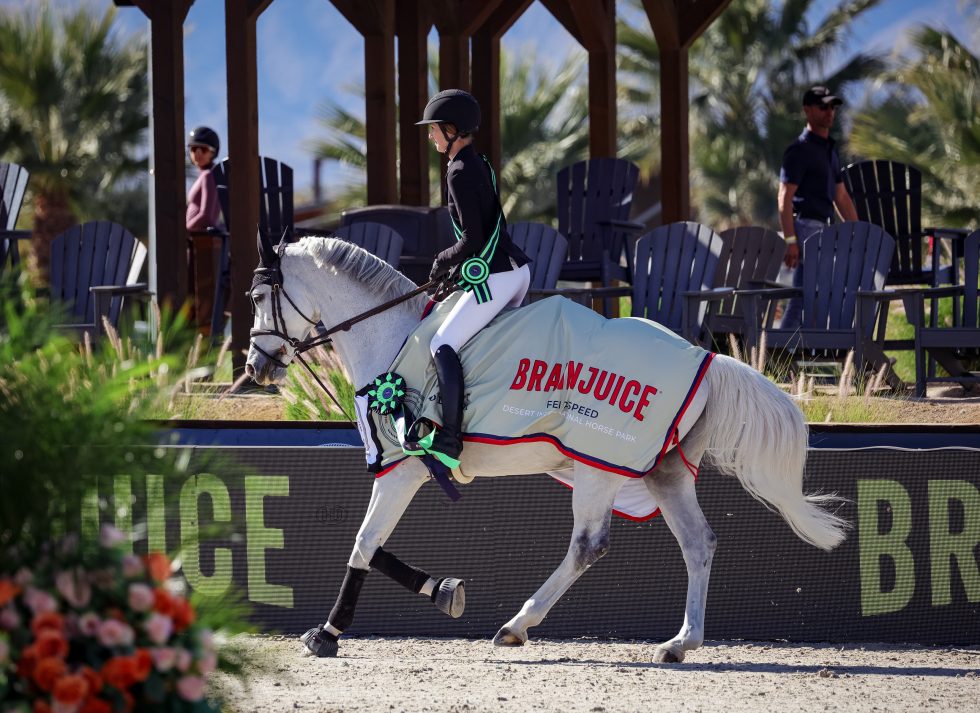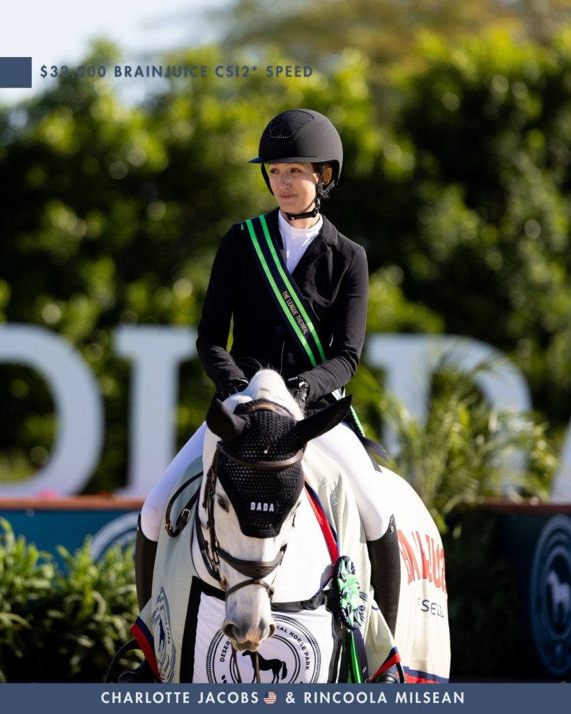 Thermal, United States – December 05, 2025 – Earning an FEI win amidst the stiff competition at Desert Holiday is always special, but for Charlotte Jacobs (USA), her victory in the $32,000 BrainJuice Speed CSI 2* – 1.45m aboard Rincoola Milsean was particularly meaningful.