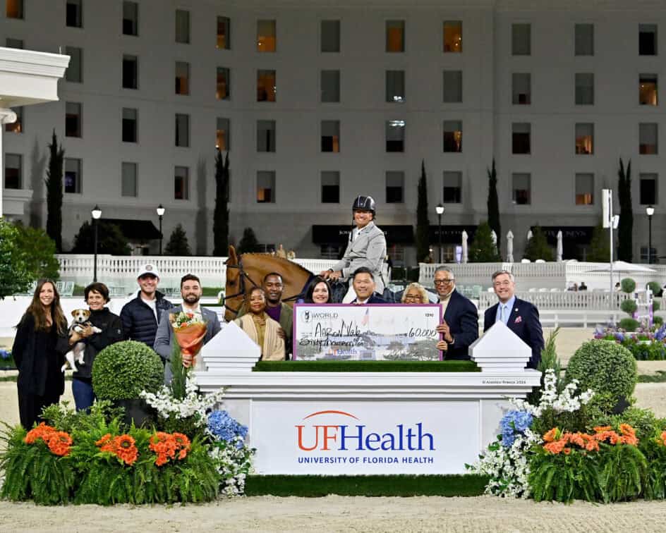 Ocala, United States – January 17, 2026 – World Equestrian Center – Ocala was abuzz with excitement as packed stands and a beautiful Florida night set the stage for the highlight event of the week, the $200,000 UF Health Grand Prix CSI 4*. A star-studded field of 34 horse-and-rider combinations representing 13 nations contested the class, but in the end it was Ocala’s own Aaron Vale (USA) who claimed the victory aboard The Carissimo Group’s Carissimo 25 (Cascadello x Clinton).