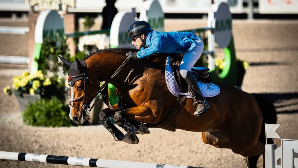 Lexington, Kentucky, USA – September 27, 2024 – Chile’s Samuel Parot (CHI) found himself atop the podium of the FEI Welcome once again on the Lugano Diamonds Split Rock Jumping Tour’s (SRJT) Fall series. He brought home Thursday’s feature win in the $35,000 C. Jarvis Insurance Welcome CSI3* with his own Tiffany de Olid (Huppydam des Horts x Centauer Z), saving the best for last in an exciting six-horse jump-off to top the field by less than half of a second.
