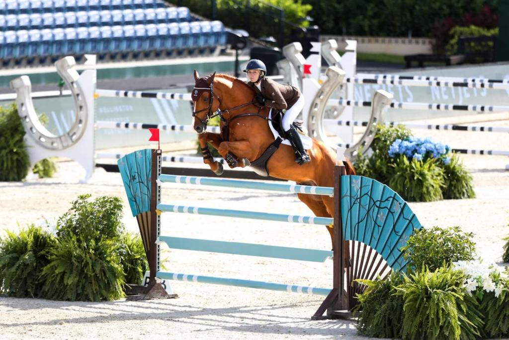 Less than a second separated the podium finishers. Lillie Keenan (USA) stopped the clock at 67.48 seconds to finish third on Chansonette Farm’s Chagrin d’Armour, a 9-year-old French-bred stallion.
