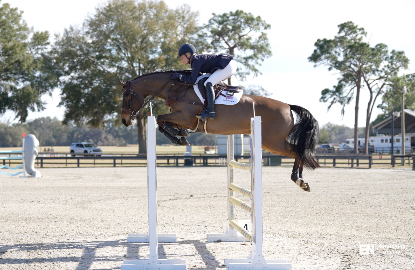 A signature spectator-friendly format, Jump & Drive delivers fast-paced entertainment. The rider first completes the jumping phase on horseback, then switches immediately into a car and races through a driving course with obstacles. Jump & Drive is a format that blends athletic precision, speed, and split-second decision-making across two disciplines in one class.