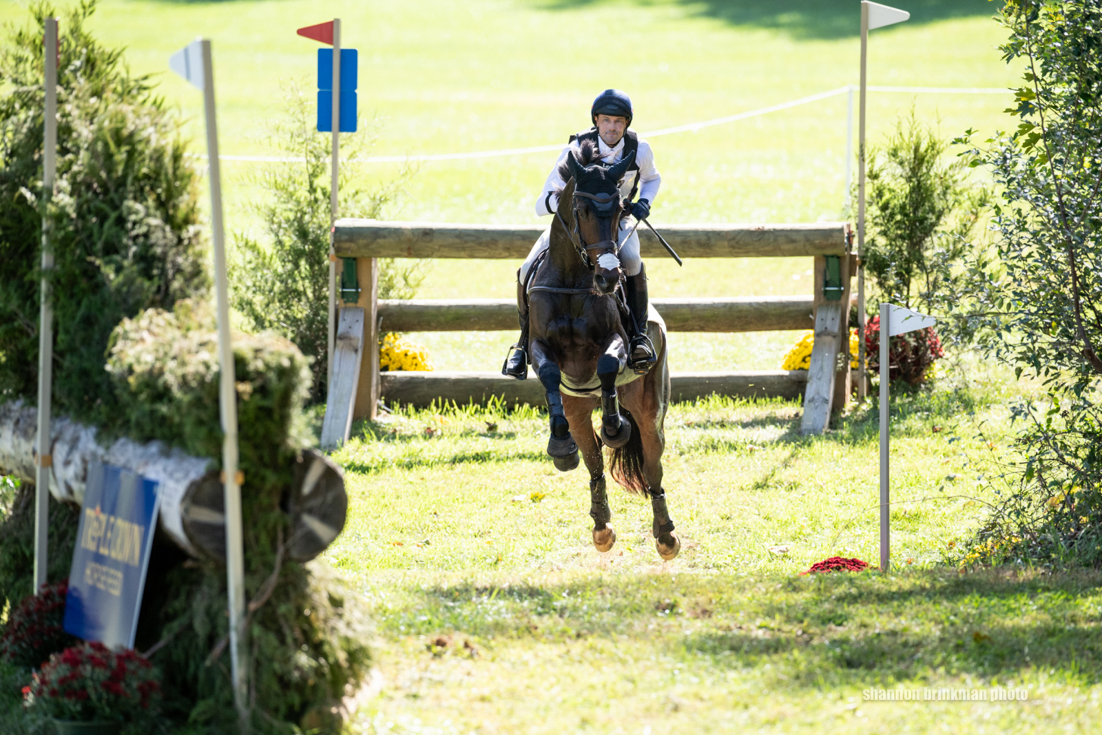 Liz would describe “Mikki” as a stronger, powerful horse, so how has Boyd managed that power as he’s gotten to know the 13-year-old Swedish Warmblood gelding who was bred here in the U.S. by Laurie Cameron. Here, he credits the slow process of preparation and also the fact that he’d watched the horse with Liz for so long that he had context on what he would be riding when Mikki came into his program. “I never got to the point where he was strong in his preparation events,” Boyd said, having run Mikki sparingly and trusting in the foundation he’d gotten from Liz. When he did fire up and get a little strong on cross country today, “I was sort of trying to make a big effort not to fight with him, and trying to more, sort of, instead of pulling back, trying to lift his frame uphill. But that’s something I’ve got to work on and address next year as we head towards getting him back to the five-star level.”