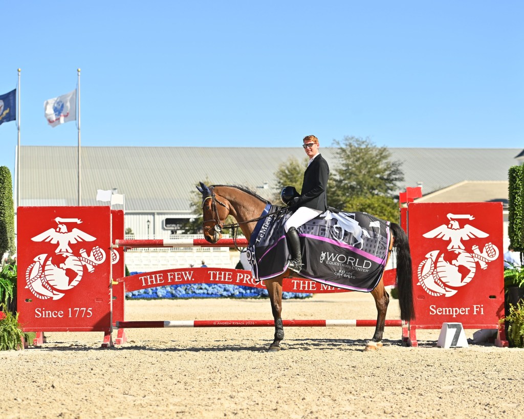 Ocala, United States – February 04, 2026 – Daniel Coyle (IRL) has been on fire at World Equestrian Center – Ocala. It was no different on opening day this week as the flying Irishman and Calippo 57 charged to victory in the $32,000 Marine Corps Heritage Foundation Speed CSI 4*.