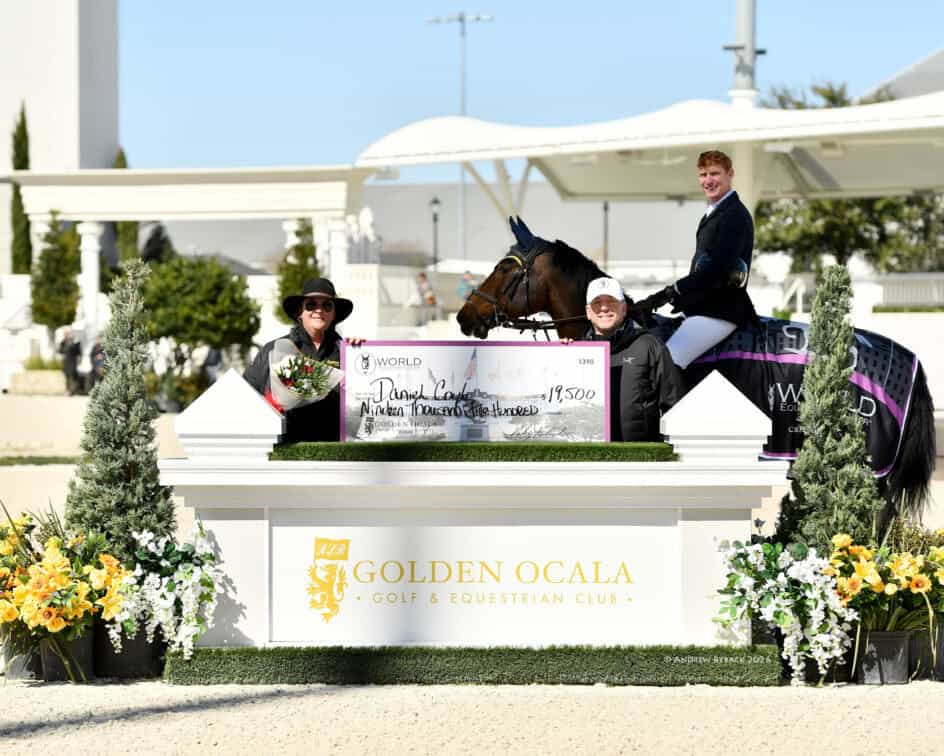 Ocala, United States – February 01, 2026 – International competition during Week V of the 2026 Winter Spectacular Show Series at World Equestrian Center – Ocala (WEC) came to a close on Sunday as 19 horse-and-rider combinations contested the $65,000 Golden Ocala Grand Prix CSI 2*. Fresh off a win in Saturday night’s Grand Prix CSI 4*, Ireland’s Daniel Coyle (IRL) returned to the WEC Grand Arena and prevailed once again, this time aboard his brand-new partner, Urville Z (Ukato x Crown Z), owned by Ariel Grange.