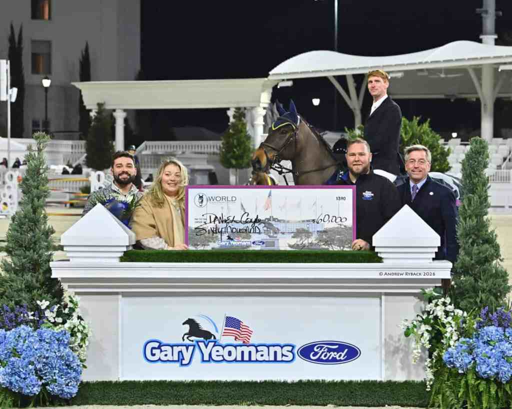 Ocala, United States – January 31, 2026 – An unseasonably cold Saturday night didn’t deter a world-class field from contesting the $200,000 Gary Yeomans Ford Grand Prix CSI 4*. Thirty athletes representing 15 countries took on the challenge, and in the end, it was World No. 11 Daniel Coyle (IRL) who piloted his longtime partner Farrel (Cardento 933 x Stakkato), owned by Ariel Grange, to a well-earned victory.