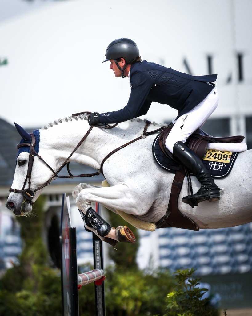 The two-phase challenge was contested by thirty-three combinations but it was the Darragh who dared to go the fastest in the second section of the course after while still clearing all the 1.45m obstacles aboard the 2013 grey Zangersheide gelding (Chellano Alpha Z). The dynamic duo dashed across the finish line in 29.74 seconds to secure the victory.
