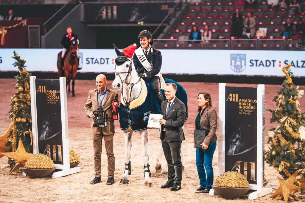 Salzburg, Austria – December 05, 2025 – The Italian Emanuele Gaudiano, known for his fast laps, claimed victory in the feature class on opening day of the 2025 Amadeus Horse Indoors CSI 4*. Riding his gray gelding Chalou’s Love PS , he finished ahead of the New Zealander Luke Dee (NZL) and Gangster WW. Third place also went to Italy: Roberto Turchetto (ITA) and Heidelberg.