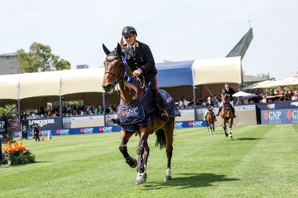 Victory went to Italy’s Emanuele Gaudiano aboard Nikolaj de Music, stopping the clock at 61.29 seconds. Mexico’s Arturo Parada Vallejo (MEX) took second place riding Valento, while Belgium’s Niels Bruynseels (BEL) completed the podium in third with Credibilis van het Lindenhof Z.