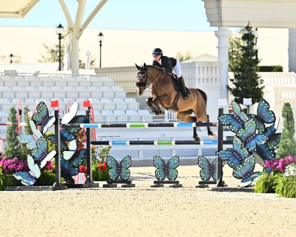Course designer Anderson Lima (MEX) once again set a challenging track, with rails coming down throughout the course. Nine combinations advanced to the jump-off with clear rounds, but only four ultimately produced a double-clear effort.