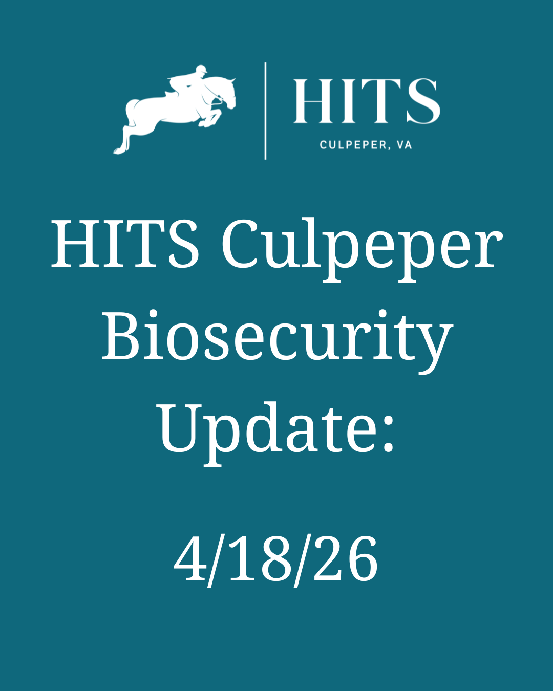 On Friday, April 17, 2026, HITS Culpeper Show Management was notified of a confirmed case of Equine Herpesvirus Myeloencephalopathy (EHM). The horse, a 21-year-old gelding, was immediately removed from the showgrounds upon presentation of symptoms and admitted to the Equine Medical Center.