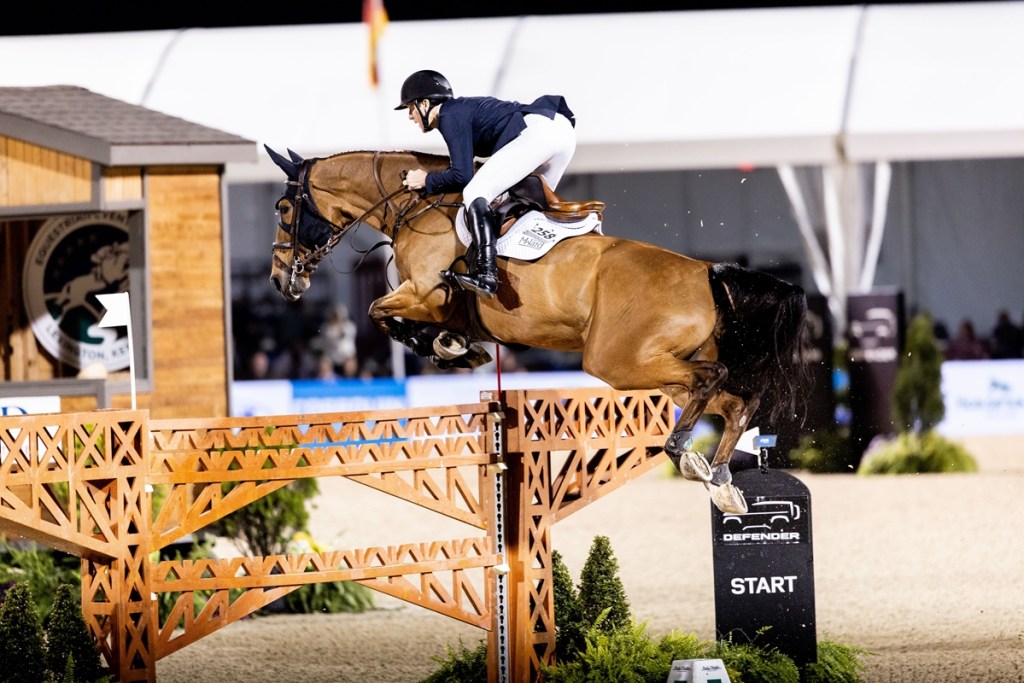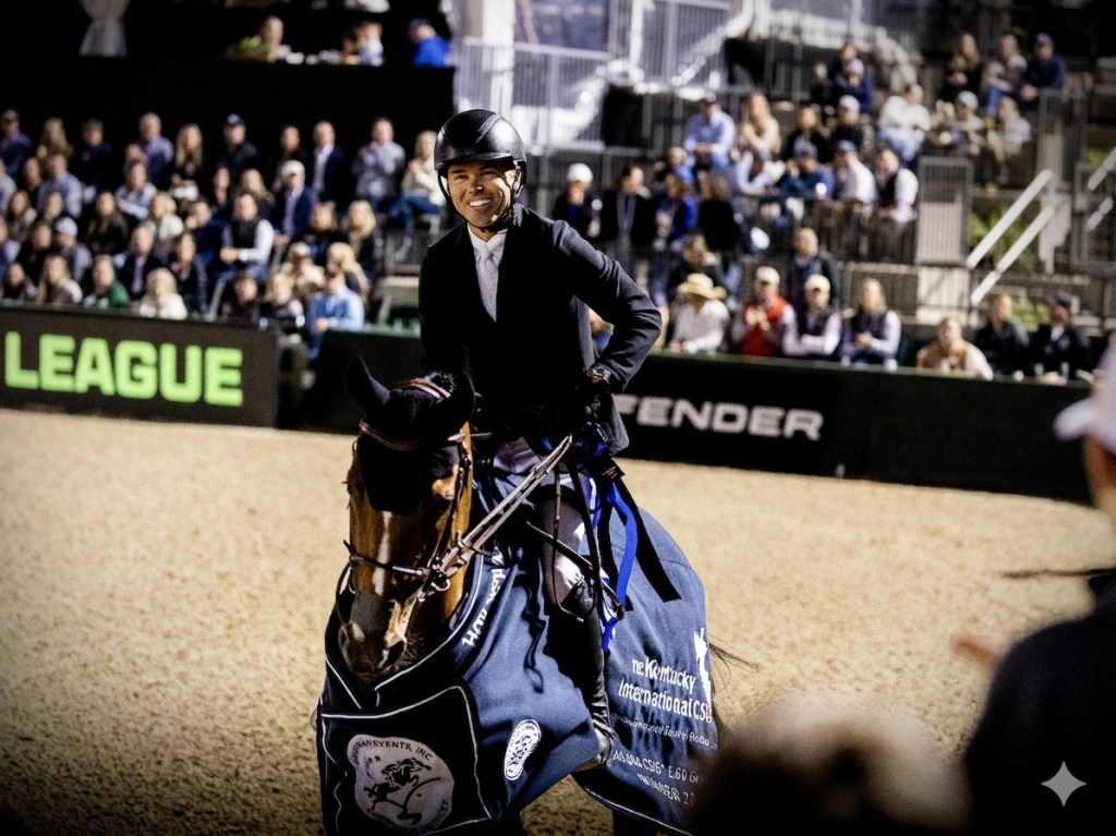 Lexington, United States — April 26, 2026 — World No. 2 Kent Farrington (USA) rode Descartes SR to break the 9-year-old’s five-star maiden in the $340,000 Grand Prix CSI 5*, presented by Hagyard Equine Medical Institute, to conclude Leg 8 of Major League Show Jumping (MLSJ) at the Kentucky International, held alongside the iconic Defender Kentucky Three-Day Event in Lexington, Ky.