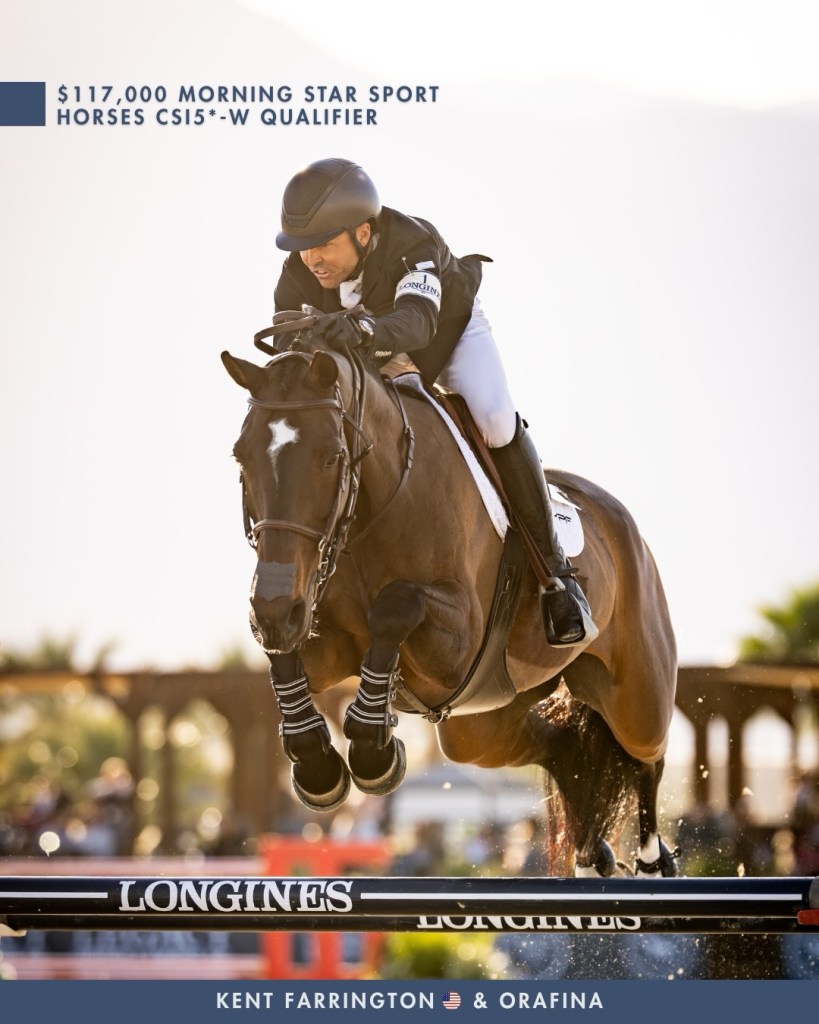 Thermal, United States – January 29, 2026 – For the second week in a row, Kent Farrington (USA) showed spectators at Desert International Horse Park why he is the top-ranked showjumper in the world. This time, the World No. 1 rider and his longtime partner, Orafina, flew to a commanding victory in the $117,000 Morning Star Sport Horses Qualifier CSI 5*-W, held on Thursday, January 29.