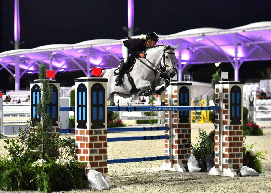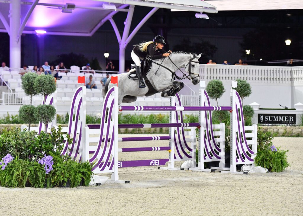 Ocala, Florida, USA – June 20, 2024 – A perfect Florida night set the stage for the $62,500 Grand Prix Qualifier CSI 3*, featuring 42 top Jumping combinations from 13 nations. FEI Level IV course designer, Guilherme Jorge (BRA), crafted the winding tracks for the tonight’s qualifier which culminated in an exciting 13-horse jump-off. Kristen Vanderveen (USA) and Bull Run Jumpers, Inc.’s Bull Run’s Hesed (Christian 25 x Lord Z) clinched victory by a mere tenth of a second.