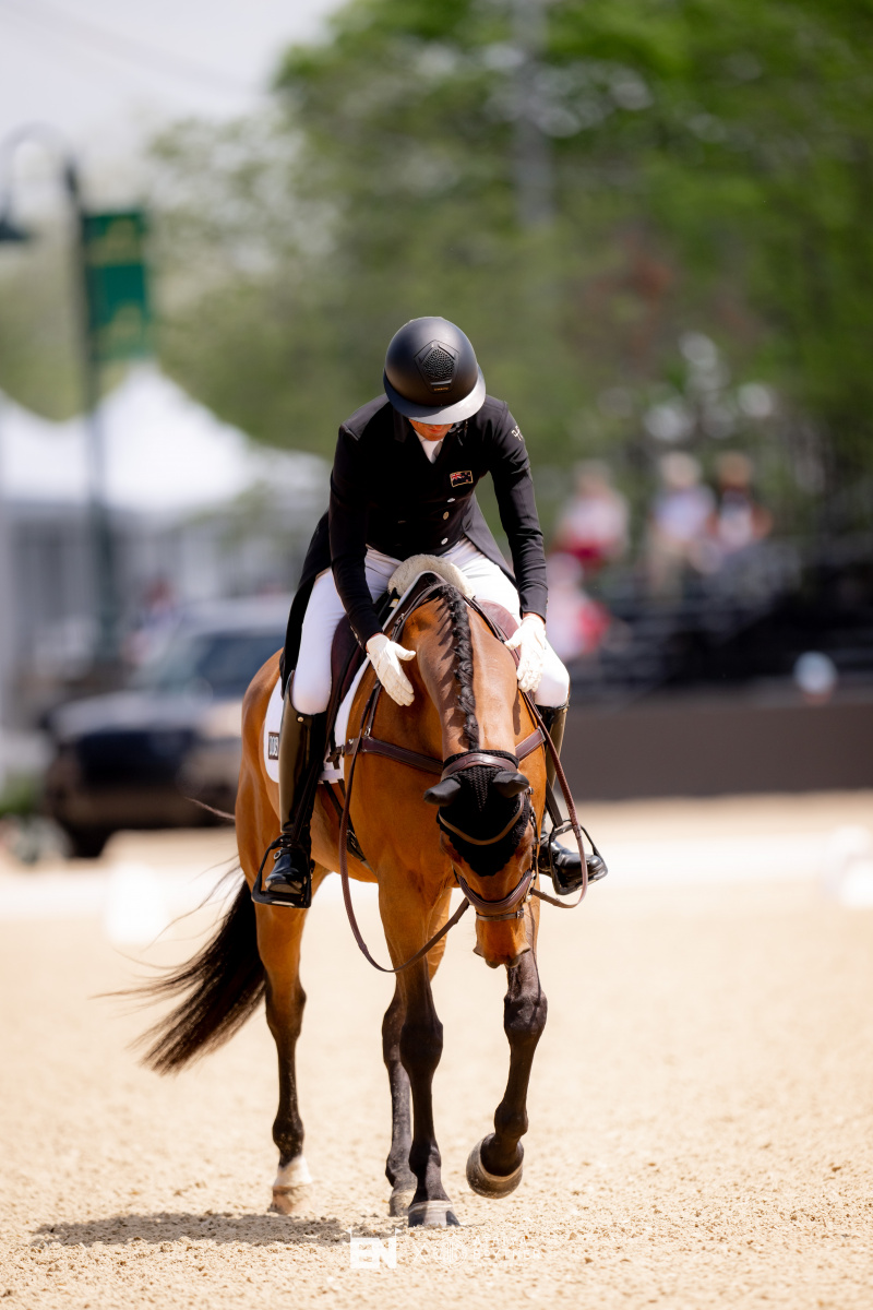 Tim Price (NZL) rounds out the top three with Global Quest (Metropole – Broadford Star), a horse formerly ridden by the late and loved Georgie Campbell, earning a 29.8 for third place overnight. “He’s not God’s gift to dressage,” Tim laughed. “He’s quite a big horse, and he finds it all quite difficult, but I think the recipe was good this time. He was relaxed and giving as much of himself as he could, and it was quite fun.”