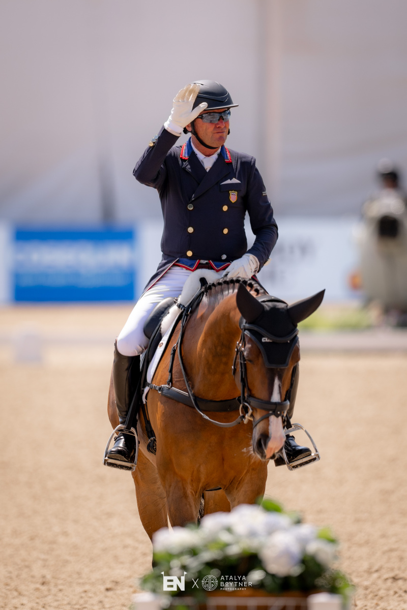 Boyd Martin had a very special guest in the stands today: Liz Halliday made her first public appearance this afternoon just in time for her Olympic horse, Cooley Nutcracker (owned by Liz’s Nutcrackers — yes, that is the owner group’s name and we’re very here for it), to go down centerline. Liz, who continues her incredible recovery from a traumatic brain injury sustained in a fall in August of 2024, recently obtained her para dressage certification (LA28 BABY) and will be in attendance all week at Kentucky to cheer on Boyd and “Bali” as well as all of her friends and teammates competing this week.