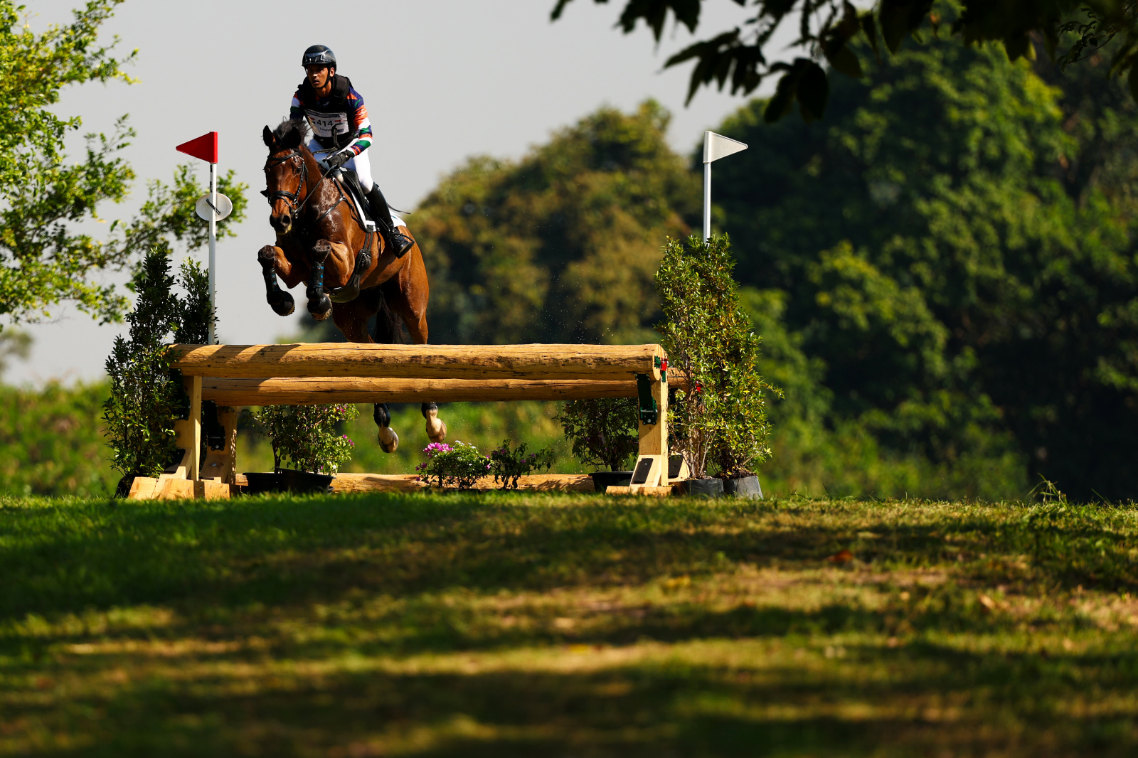 The FEI Asian Championships 2025 CCI2* cross country phase ran in the morning before the day reached max temperature of over 31°C (89°F). As we often see after the completion of this phase, the placings shifted just a bit. Thailand’s Korntawat Samran and B.Grimm Billy Elmy (Qif Elmy x Dandy de Surcy), owned by Mr. Harald Link & Ms. Nunthinee Tanner, took over the top spot, keeping their penalty score at 28.8. Sitting on a penalty score of 29.4, Ashish Limaye (IND) aboard Willy Be Dun took over the second spot. Still in the top three, Alex Hua Tian (CHN) and Manjushri were clear over the course, but incurred 2.4 time penalties, for a score of 29.6.