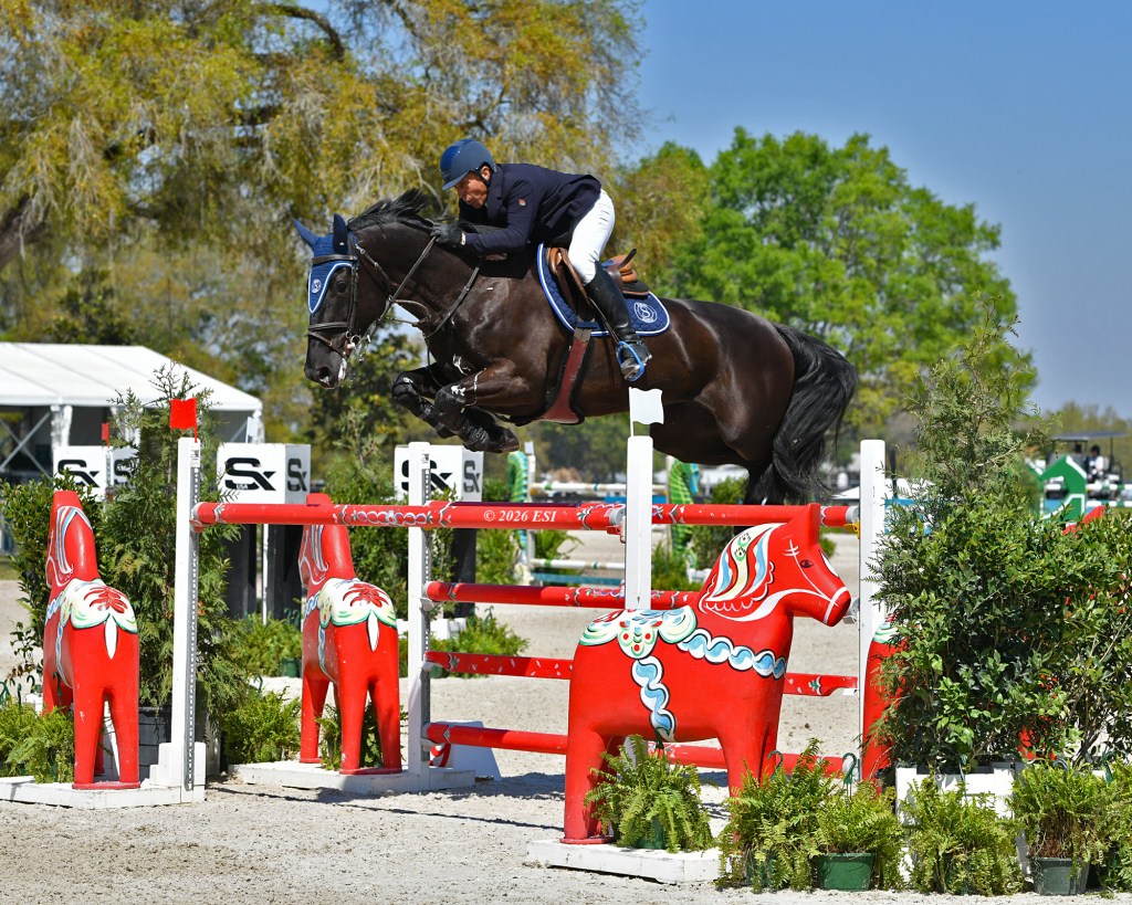The $70,000 Douglas Elliman Grand Prix Qualifier CSI 5* was Ward’s first international class with the 11-year-old Belgian Sport Horse gelding owned by Thaisa Erwin and Michael and Wendy Smith. That didn’t stop the new partnership from soaring over course designer Nick Granat’s 16-effort, 1.60m track in the initial round, which narrowed a field of 47 entries from 11 nations to just 12 in the jump-off. In the tiebreaker round, Ward and High Star Hero proved uncatchable with a tidy, efficient ride in 34.91 seconds.