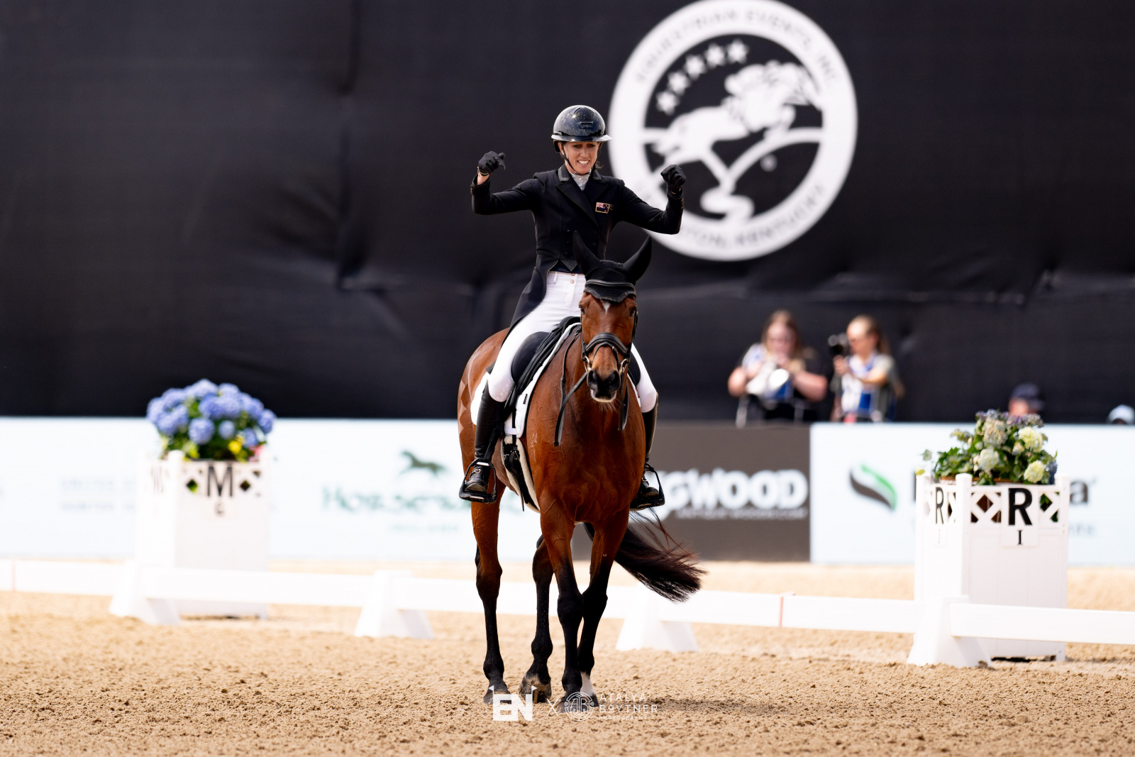 “Monica’s horse and her riding is very, very accurate,” Andrew Bennie told me today. “The horse has got good paces, but he is a Thoroughbred. Tim’s horse, I believe, is a warmblood, so he’s probably just that little bit more expressive than Monica’s horse, but with that they also get the difficulty of keeping the balance and the control. Tim’s did just have one little tiny blip, whereas Monica’s was extremely consistent and the horse was extremely reliable. He’s been around the block a few times, and he’s a super horse — and so’s Tim’s horse. Being a New Zealander and marking the New Zealanders up, I kept thinking, ‘I hope the other judges are marking them up as well!’” (Spoiler alert: they were)
