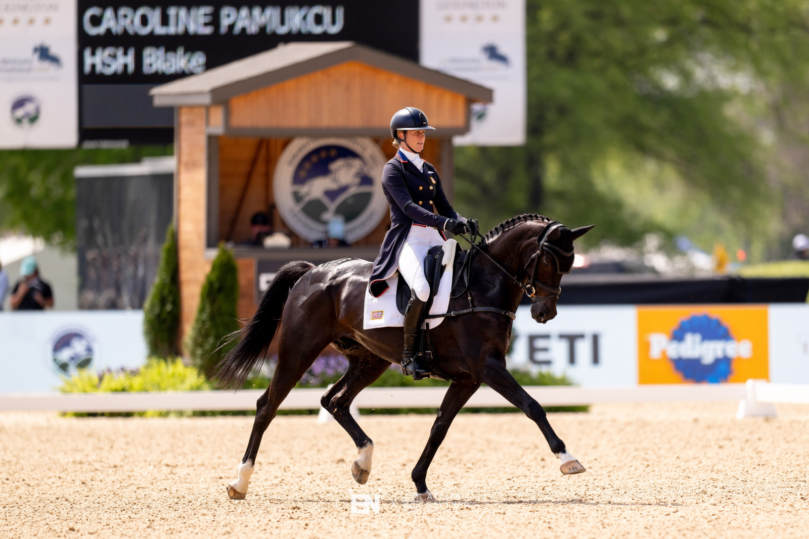 “I was really pleased with my horse this morning,” Elizabeth said of her test today. “He’s always one to rise to the occasion — he loves a crowd and an atmosphere, so he went into the stadium and just absolutely loved the attention. It was definitely our best test as a combination. He was really on it, he was listening to me, he was forward and it felt like we had a great ride together.”