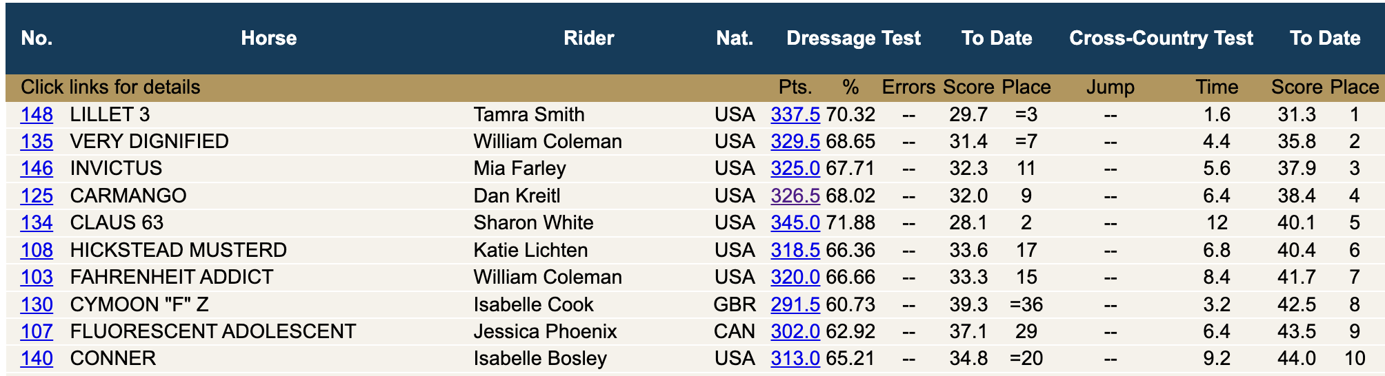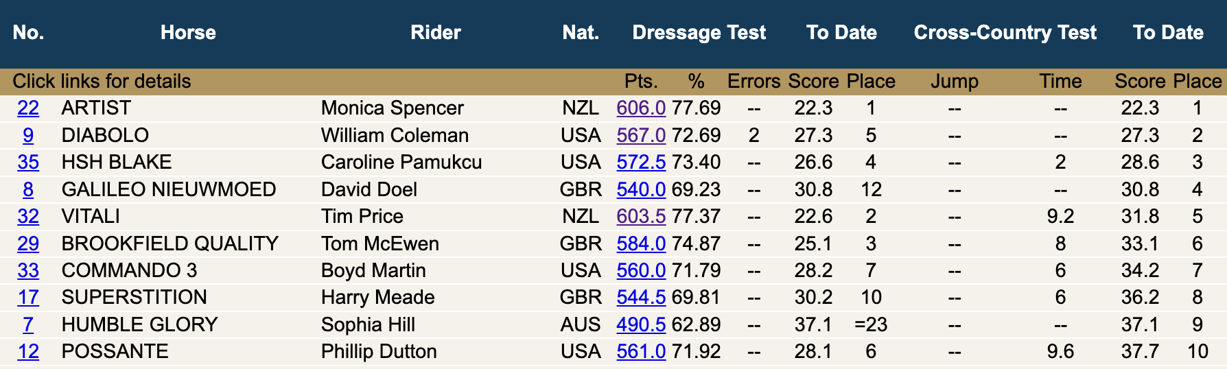 Here’s a look at your top 10 in the 4*-S ahead of show jumping:
