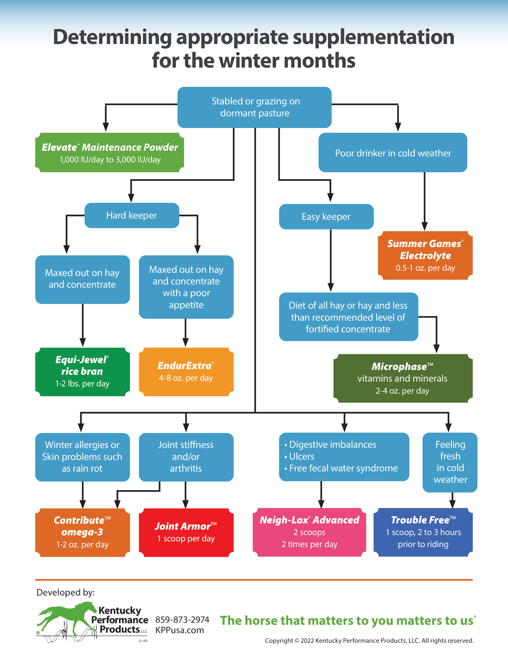 Worried about your horse staying healthy this winter? Targeted supplements can help! Download KPP’s winter decision tree and find out what winter supplements will most benefit your horse.
